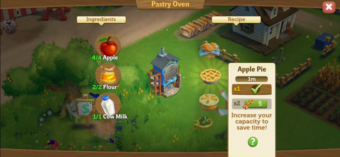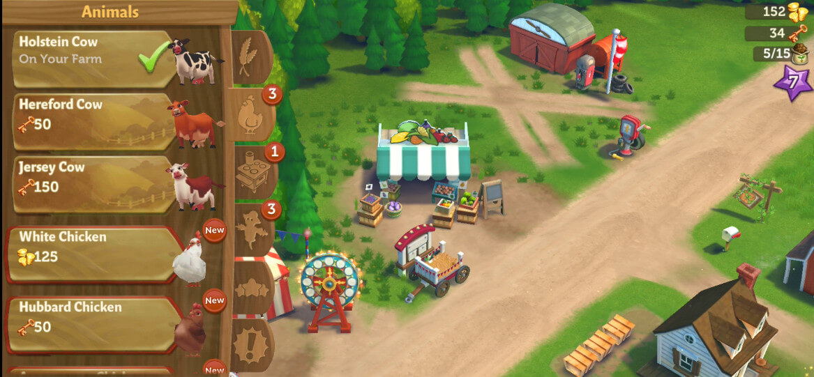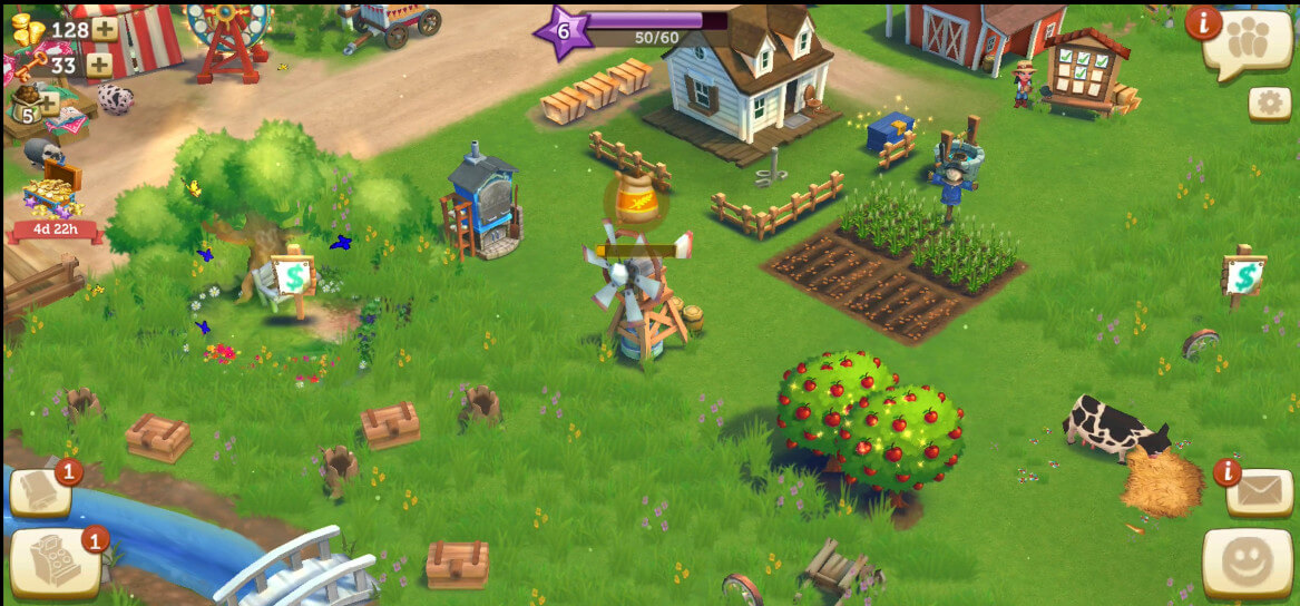 You’ll start quick and easy, with most of the crops and goods taking a minute or less to grow or make. This gives you a great headstart so that you can sell your produce and earn generous amounts of EXP right at the onset. The faster your farm produces, the more income it generates, and the quicker will it be for you to level up and access more profitable goods and crops. You can sell according to what the Farm Orders board is looking for, or set up your own store and wait for friends to buy your items.